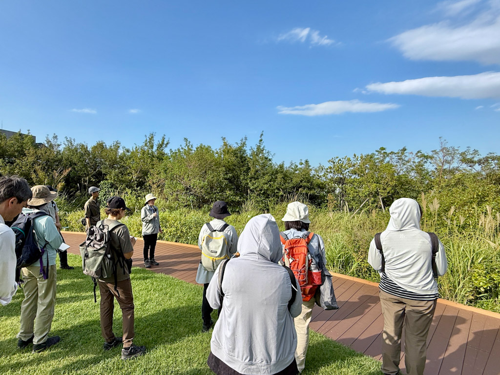 前述のカワラノギク保全に係る具体的な管理や、レクチャースペースで実施している情報発信の取組、ビオトープや緑地を活用したイベント等について詳しく教えていただき、環境の経年的な変化や、子供を対象としたイベントの人気が年々増している事など、管理や活用が空間の価値や魅力の向上に大きな役割を担っている実態を知る事ができました。